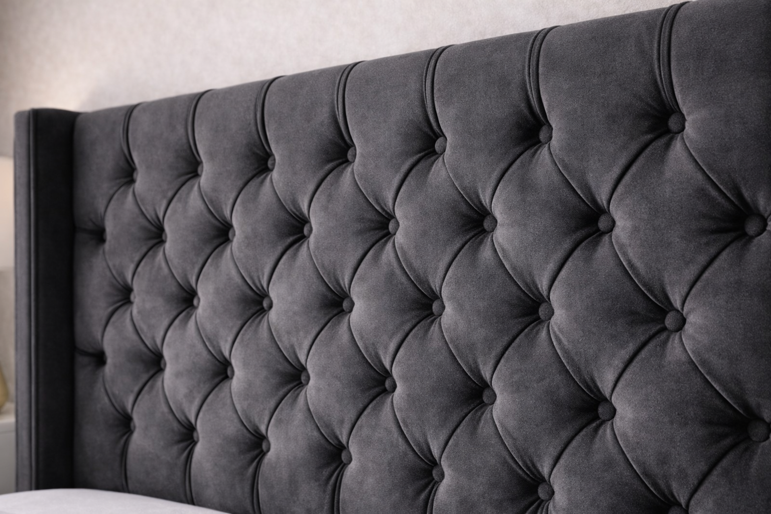 Its tall wingback headboard and deep buttoned finish give it a more elegant and structured look. It feels more styled and more luxurious than a plain flat-frame bed.